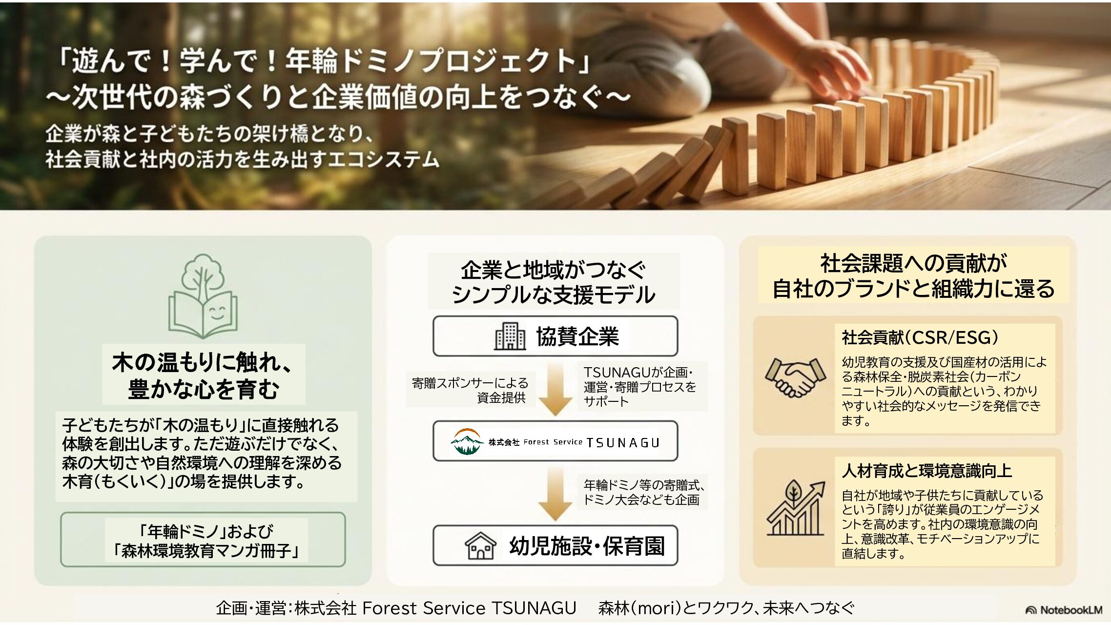 TSUNAGUでは、この木材の価値を幼児期から楽しく学べるよう、
